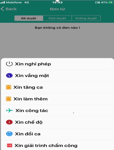 Gửi đơn xin nghỉ phép, đi trễ, làm thêm, công tác ngay trên di động