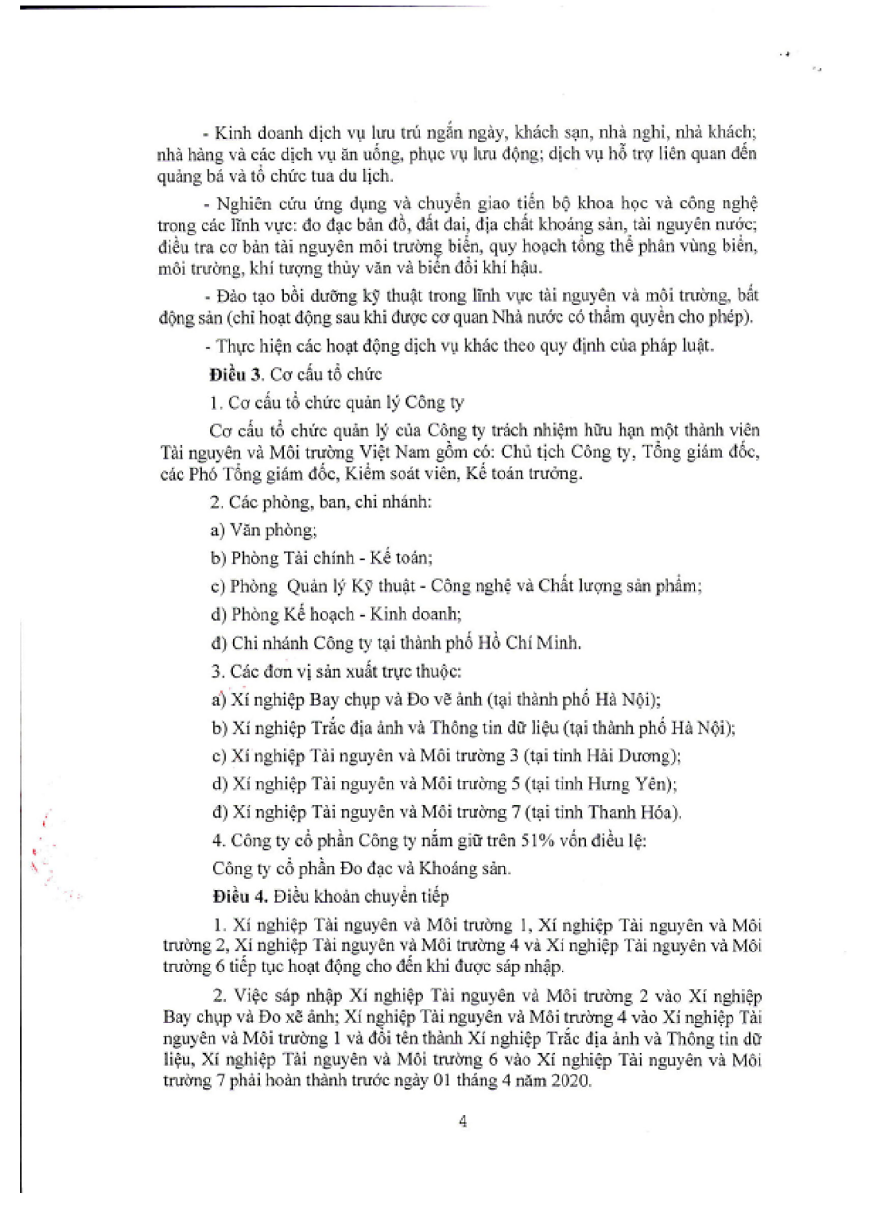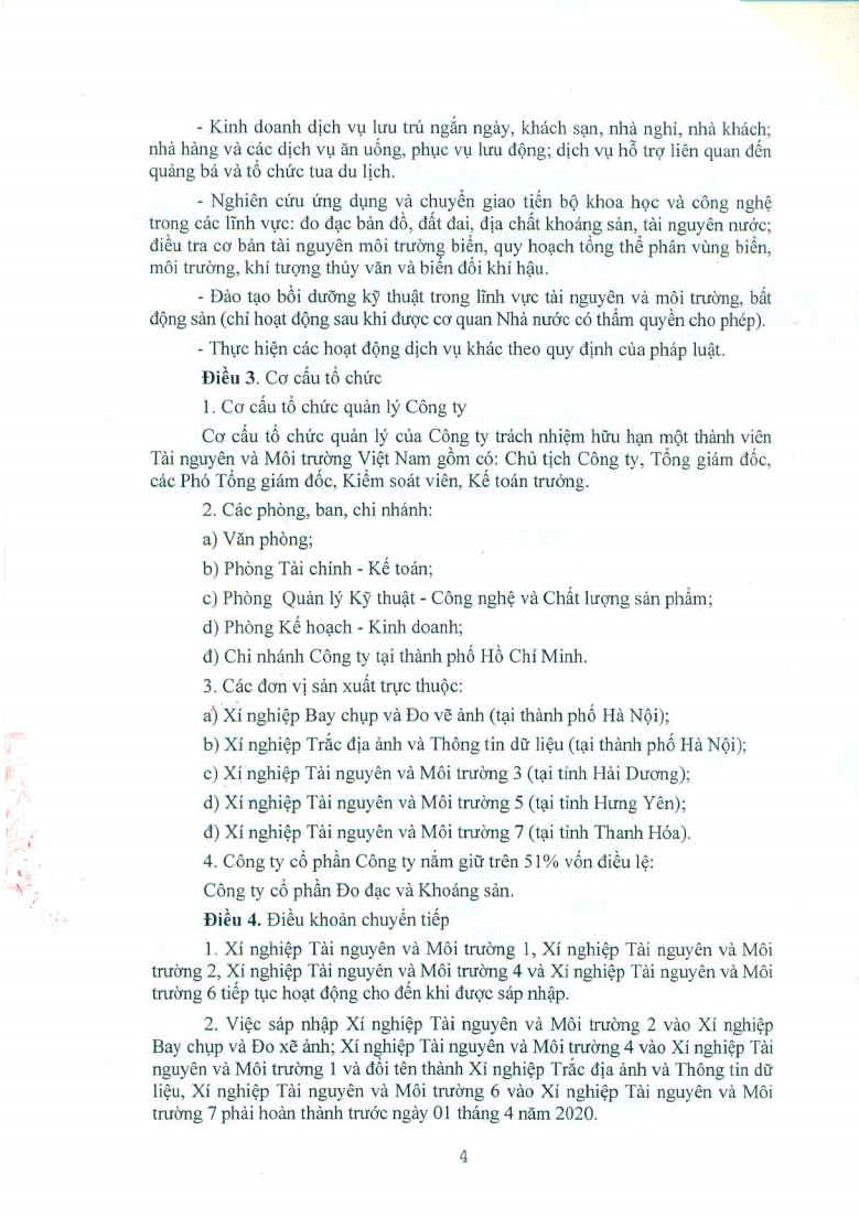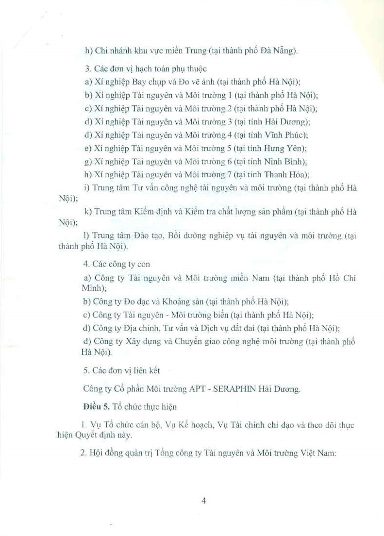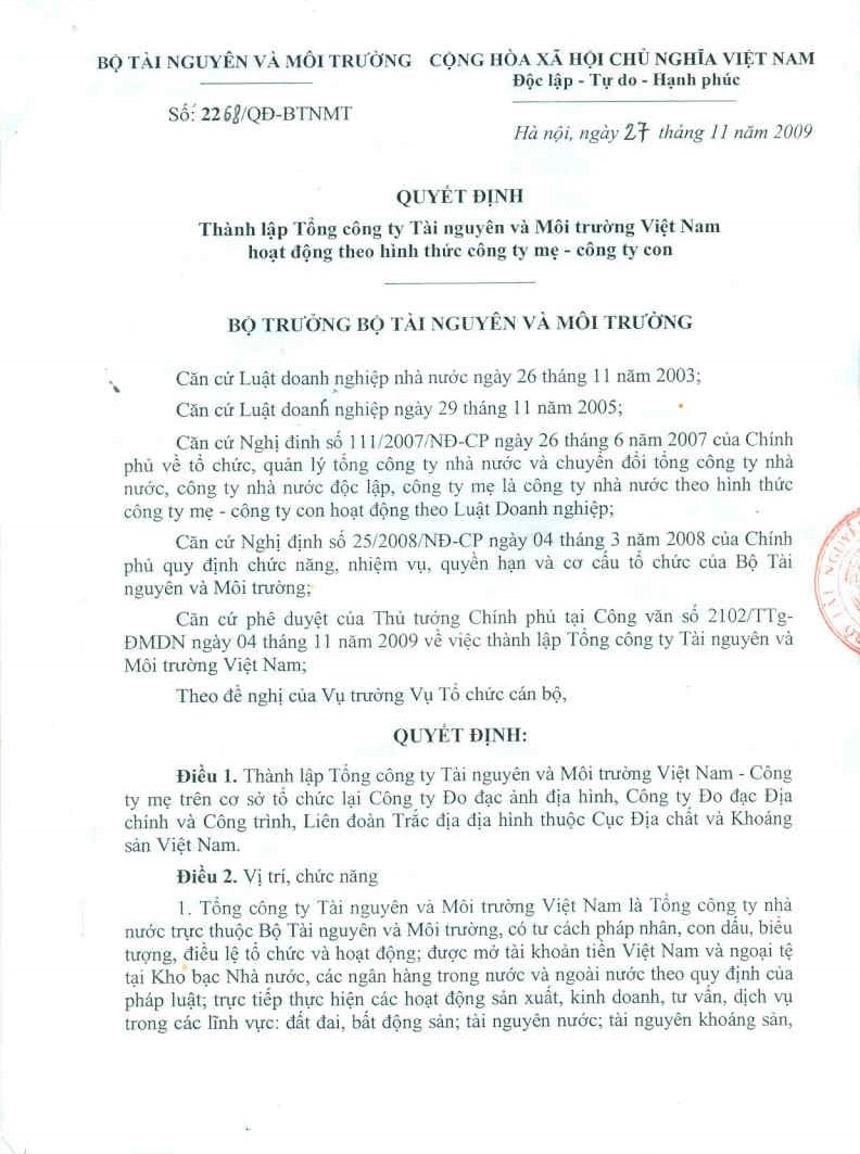 4. QUYẾT ĐỊNH THÀNH LẬP TỔNG CÔNG TY TÀI NGUYEN VÀ MÔI TRƯỜNG VIỆT NAM HOẠT ĐỘNG THEO HÌNH THỨC CÔNG TY MẸ - CÔNG TY CON