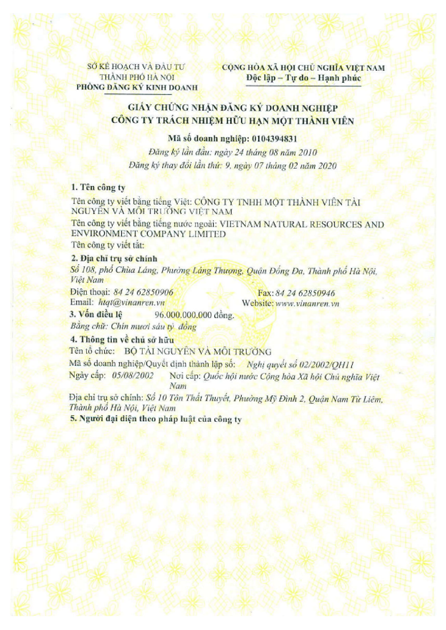 1. GIẤY CHỨNG NHẬN ĐĂNG KÝ DOANH NGHIỆP