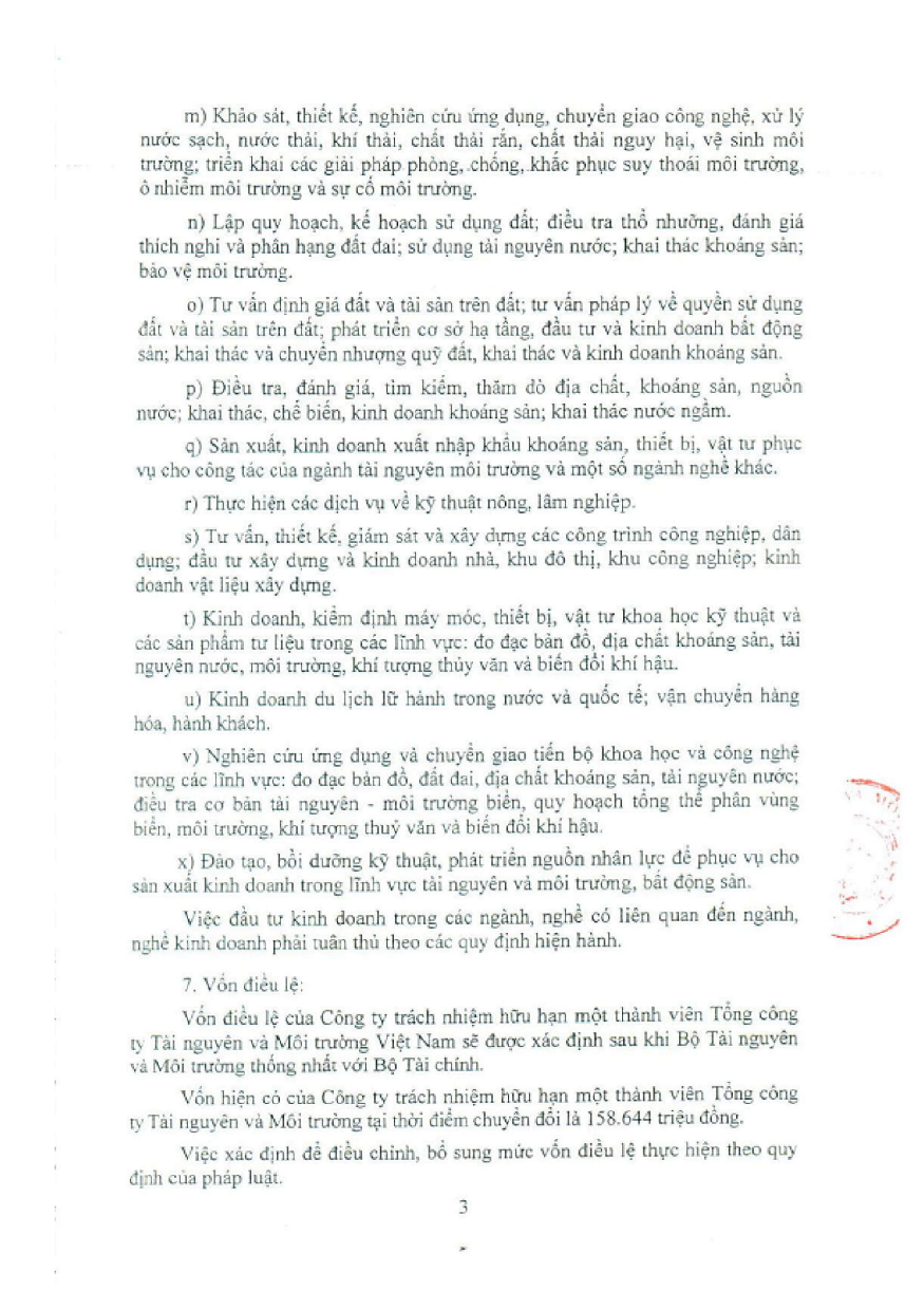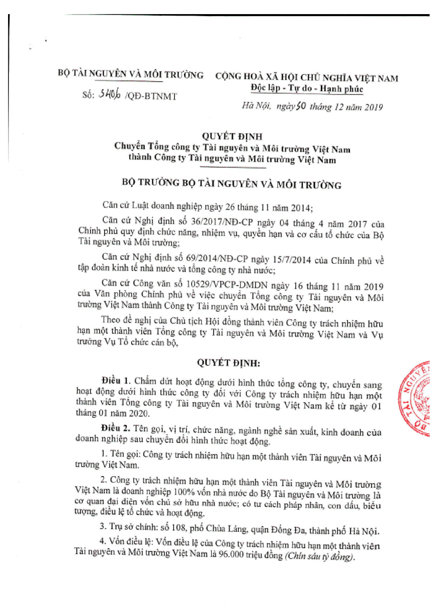 3. QUYẾT ĐỊNH CHUYỂN TỔNG CÔNG TY TÀI NGUYÊN VÀ MÔI TRƯỜNG VIỆT NAM THÀNH CÔNG TY TÀI NGUYÊN VÀ MÔI TRƯỜNG VIỆT NAM