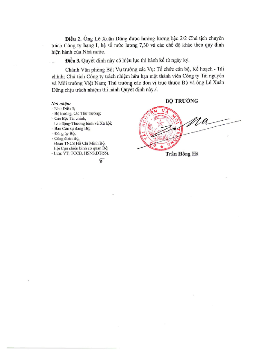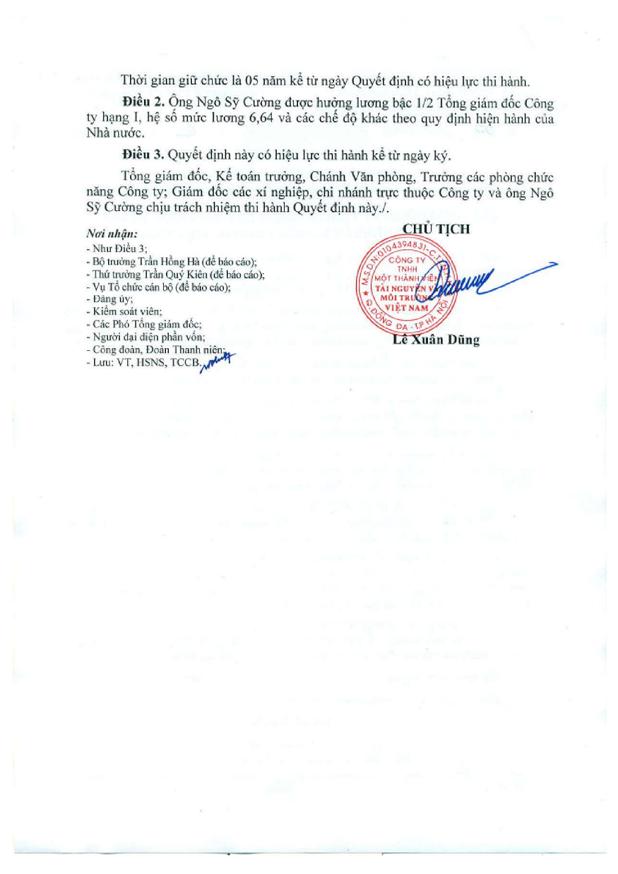 7. QUYẾT ĐỊNH V/V BỔ NHIỆM TỔNG GIÁM ĐỐC CÔNG TY TRÁCH NHIỆM HỮU HẠN MỘT THÀNH VIÊN TÀI NGUYÊN VÀ MÔI TRƯỜNG VIỆT NAM
