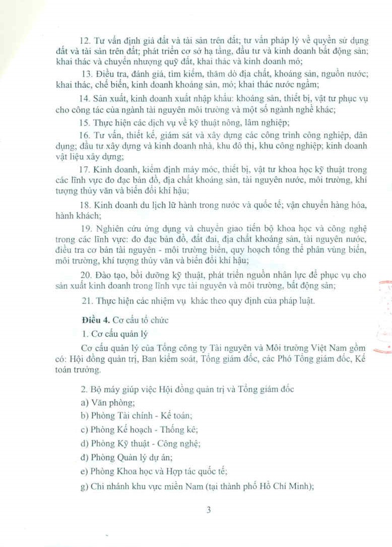 3. QUYẾT ĐỊNH CHUYỂN TỔNG CÔNG TY TÀI NGUYÊN VÀ MÔI TRƯỜNG VIỆT NAM THÀNH CÔNG TY TNHH MỘT THÀNH VIÊN TÀI NGUYÊN VÀ MÔI TRƯỜNG VIỆT NAM
